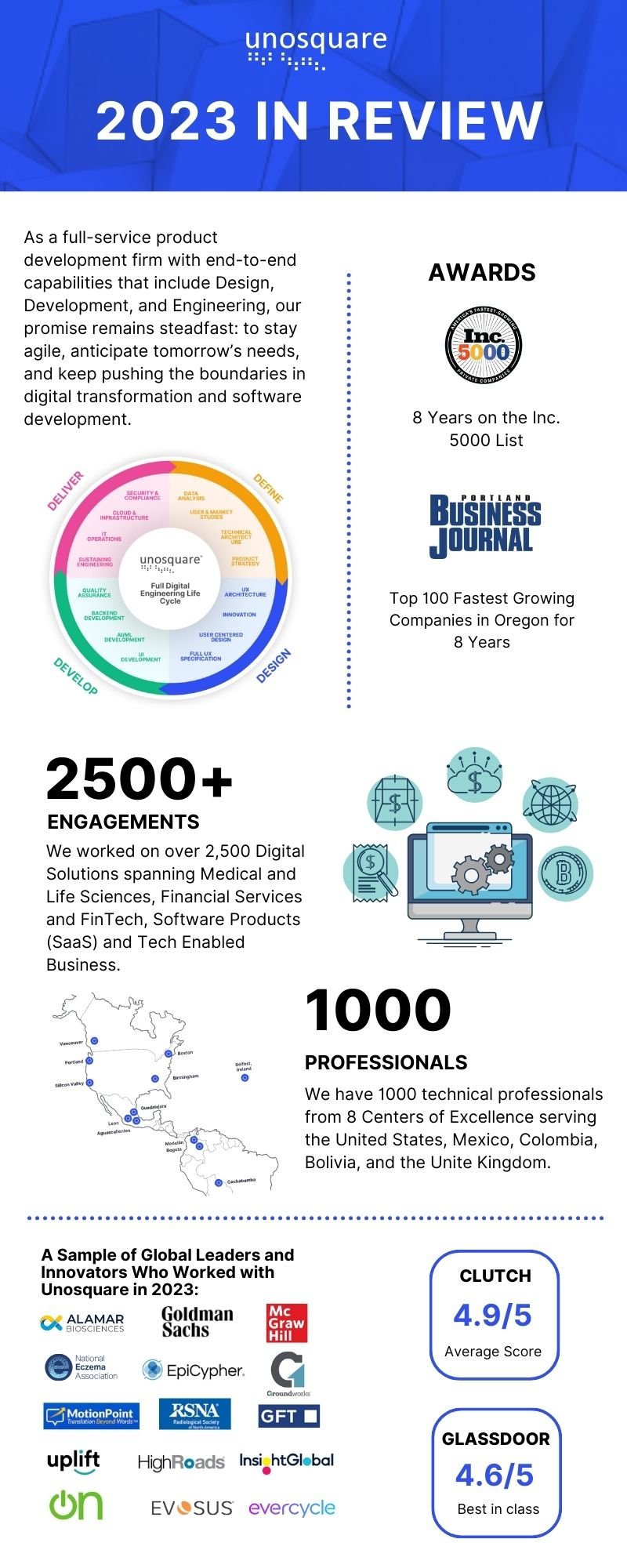 From digital strategy to agile squads, we’ve continuously evolved to ensure we’re at the cutting edge, aligning our offerings with the ever-changing digital landscape. Our acquisition of CatalystUX and Airship earlier this year further exemplifies this commitment. Now, as a full-service product development firm with end-to-end capabilities that include Design, Development, and Engineering, our promise remains steadfast: to stay agile, anticipate tomorrow’s needs, and keep pushing the boundaries in digital transformation and software development.