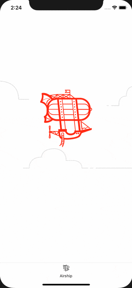 (an awesome toolbelt of functions for reanimated and gesture handler!) in this example to create the animation. It is a loop of the Airship logo bobbing in the sky along the y-axis with clouds in the background slowly going back and forth along the x-axis.