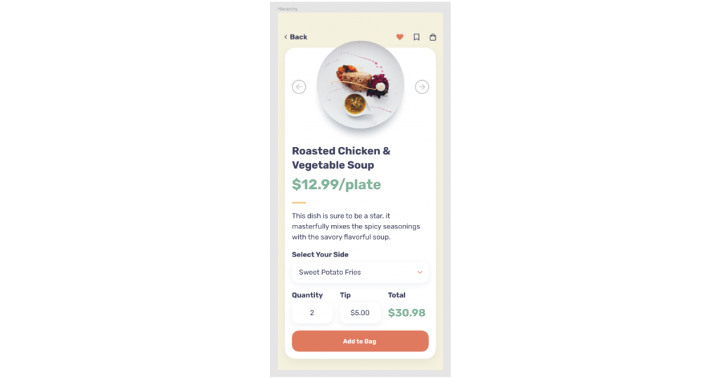 Now take a look at it after I gave it some much needed hierarchy. All of the sudden, this page is much easier to scan. I see the price is large, a heavier weight and a different color, as well as the total price. This shows me those 2 pieces of information are important! Also I see headlines are heavier, guiding my eye down the page.