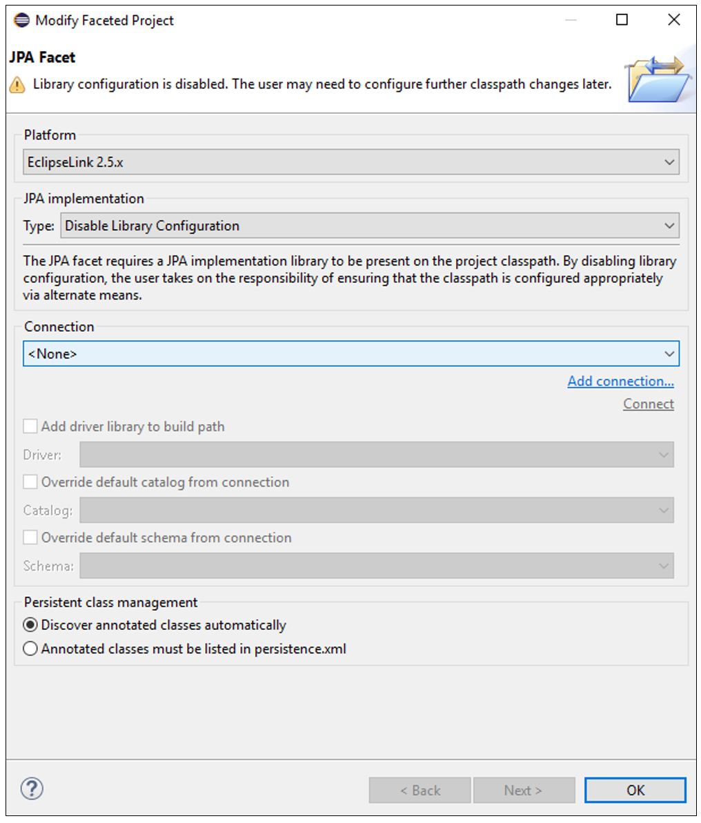 1. Project->right click->Properties-> Project Facets->JPA->Further configuration available: