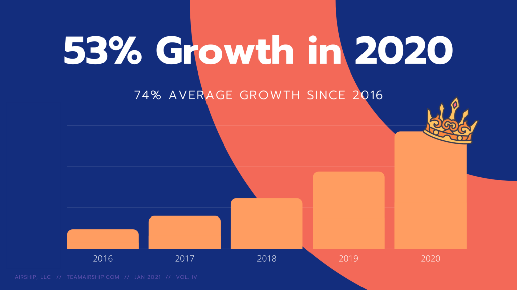 So why does growth matter at Airship and what does that mean for our clients? Growth means we can offer more comprehensive services for those in need of custom software development, from enterprise level clients to the startups. It means we’re able to grow our tech stack capabilities, increase our bandwidth, and add more skillsets and experiences by building a diverse crew. And growth means we’re able to offer better, targeted services in 2021 thanks to lessons learned in 2020.