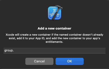 const appGroupIdentifier = 'group.com.YOURINFO.HERE';