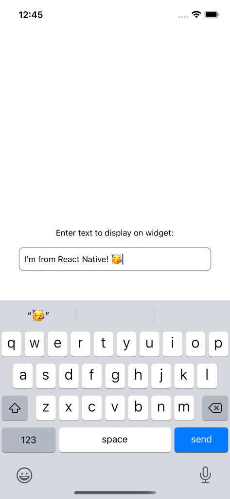 Open the app by clicking the widget or app icon. Input your data, hit send, and after the refresh time comes you will see your message displaying on your widget from React Native!!