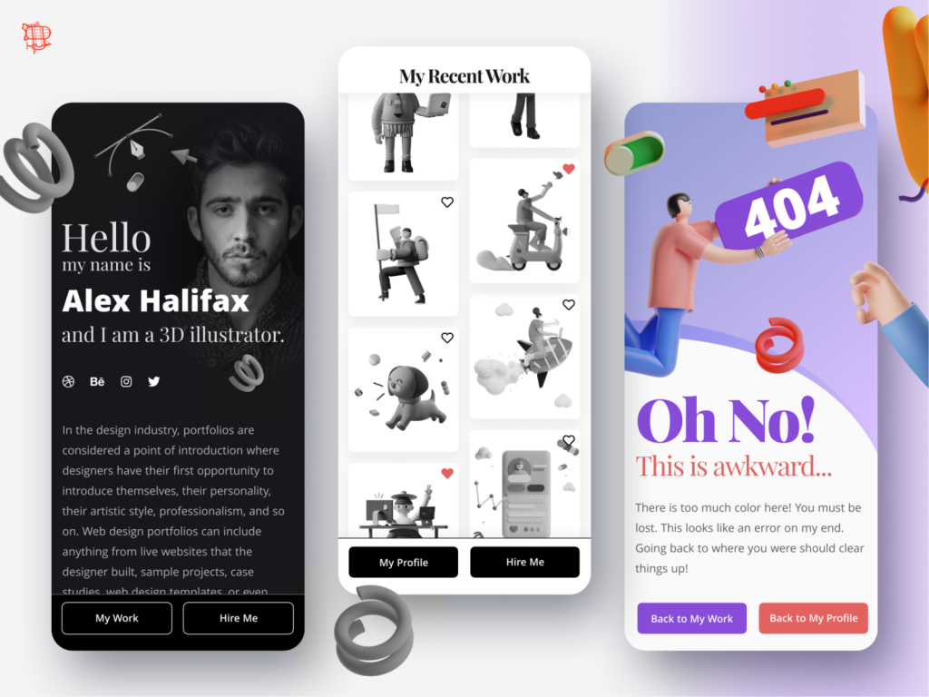 Black + White 3D Illustrator Portfolio with Colorful 404 Page