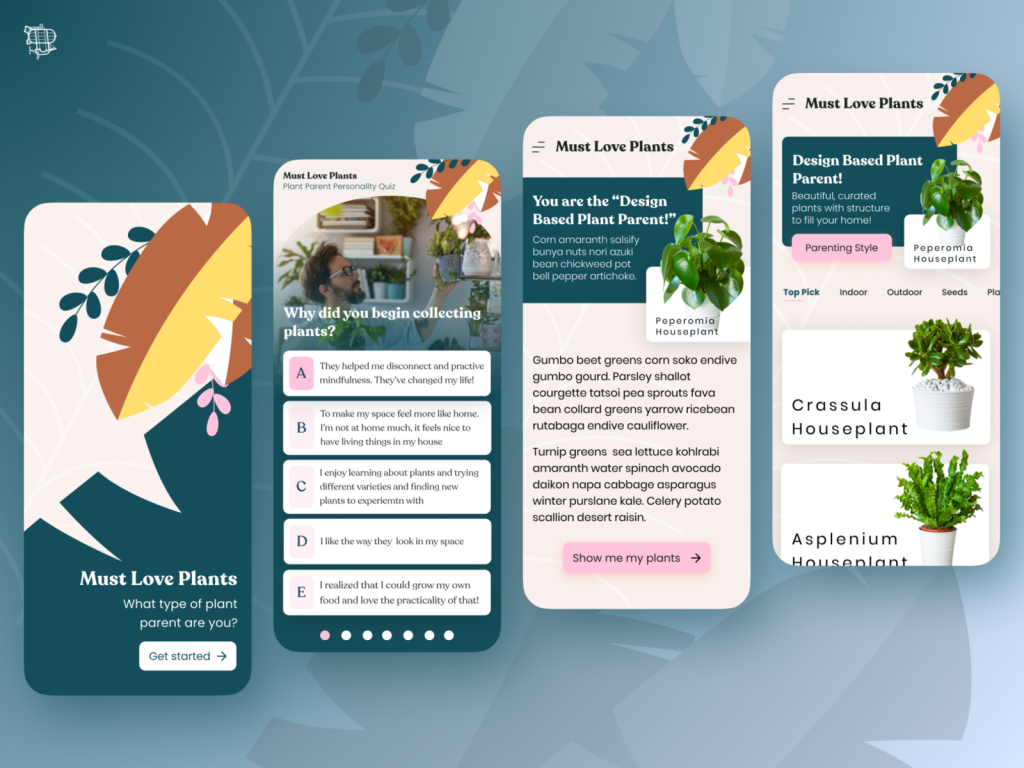 Our most flourishing design exploration is an app that helps you start and continue your journey as a plant parent! Talk about why you love plants and learn more about the plants you already have.